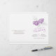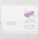 Deux cônes simples à deux faces dessinés en violet avec aiguilles de pin gris sur un programme de mariage arrière - plan blanc. Une partie des cônes de pin de mariage d'hiver stationnaire. Jolis tons violets, blancs et gris. Modifiez ce programme de mariage avec votre propre nom, dates, libellé de la cérémonie, accompagnateurs de mariage et merci. Un programme simple mais élégant remplace simplement l'exemple de texte par vos informations de mariage et plie les programmes en deux à la livraison. Programme de cérémonie de mariage de nature moderne et romantique. Dessin et design par Sarah Trett.