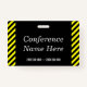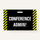 Cette conception de badge d'écumage comporte le message "CONFERENCE ADMIN!". Il présente également des bandes de prudence jaune et noir. Le verso comporte un nom d'événement personnalisable et une ou plusieurs dates d'événement. [~Z0000286]