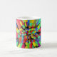 Eine lebendige abstrakte Blume in den Farbtönen Blau, lila, Rot, Korallen, Gelb, Gold, Grün und mehr!