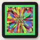 Eine lebendige abstrakte Blume in den Farbtönen Blau, lila, Rot, Korallen, Gelb, Gold, Grün und mehr!