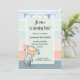 Niedliche Kindergeburtstag Party Einladung mit einem glücklichen Mädchen auf einem einfachen pastellgestreiften Hintergrund mit Bbunting und Konfetti.