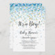 Elegant faux or & bleu Confetti C'est une invitation de Baby shower garçon avec typographie stylisée. Retournez notre invitation pour voir un retour correspondant pour une touche spéciale supplémentaire. Facile pour vous de customiser avec vos infos douche.