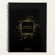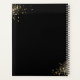Des points de confettis en or métallisé Festive apparaissent éparpillés derrière une plaque d'identification en noir et faux or contenant votre nom ou nom d'entreprise sur ce carnet de rendez-vous ou planificateur de designer. Idéal pour un usage personnel ou pour suivre les rendez-vous de votre client. Art et design © 1201AM Design Studio | www.1201am.com