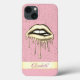 Metallische Tropflippen und goldene Konfetti auf rosa Hintergrund und Ihren Namen.