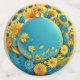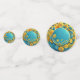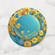 A turquoise colored ball is covered with bright yellow and turquoise flowers in this pretty confetti design.