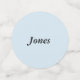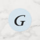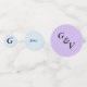 Mariage confetti avec initiales individuelles pour marié et marié de chaque côté de petits points. Les points moyens indiquent les noms de famille. Les grands points affichent les initiales d'un côté et le/les nom(s) marié(s) à l'envers. Les arrière - plans de couleur sont bleu pour le marié, rose pour la mariée, et violet pour le couple.