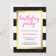 Ces invitations glamiques modernes pour fêtes d'anniversaire présentent des rayures noires et blanches à la mode avec des confettis en faux or et un cadre assorti. La typographie rose vif dit "fête d'anniversaire" en haut.