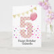 Eine farbenfrohe rosa 5. Geburtstagskarte für Mädchen, die Sie mit ihrem Namen personalisieren können. Die Vorderseite dieser farbenfrohen 5. Geburtstagskarte für sie zeigt die Nummer fünf in einem rosa Polka-Punkt mit einem rosa Ballon, der bereit ist zu schwimmen.Der Hintergrund hat einige bunte Konfetti und ein weiches goldenes Banner oben.Die innere Nachricht kann leicht personalisiert werden, wenn Sie gewollt.