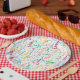 Confetti und Streamers feiern Geburtstagsparty Pappteller