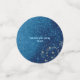 Jetez une fête spectaculaire étincelante le soir du Nouvel An pour votre famille et vos amis proches. Avec ce confetti de parti chatoyant, la célébration devient plus glamour, intense et élite. Jetez des confettis personnalisés pour qu'une partie fasse une déclaration. L'oeuvre présente des tons profonds de bleu, une flore bleue brillante et des étoiles en spirale avec des bijoux en or. Analogue à une nuit d'hiver sombre remplie d'étoiles scintillantes, l'envers a une brillance et une ambiance bleue profonde pour rendre votre fête du Nouvel An encore plus brillante.