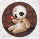 Caricature de poupée vaudou mignonne dans l'Amour, à l'air triste, un coeur brisé... avec une épine sur le coeur. Aussi design déplaisant pour Halloween Romance. Créé à l'origine sur Vector Graphic Art Technique. BluedarkArt Copyright.