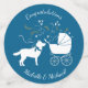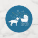 Inclure le grand frère ou la soeur en fourrure bébé dans la célébration avec cet adorable baby shower de chien Husky Sibérien ! Parfait pour un amoureux du chiot avec un bébé en route. Le Huskie est à côté d'un adorable chariot vintage. Le bleu est parfait pour un baby shower garçon !