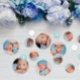 Chic confetti table pour un baptême en bleu et blanc, avec quatre de vos propres photos de votre bébé garçon. Ajoutez les initiales de votre bébé en bleu contre blanc à un côté du plus petit confetti, qui a une croix mignonne de l'autre côté.