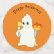 Un mignon fantôme d'Halloween tenant une bougie et un citrouille sur les tons noir et orange Table Confetti.