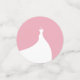 Une robe de mariée élégante sur un beau fond rose accentue l'avant de ces confettis de table et le dos est encore orné du nom de la mariée, ce qui la rend vraiment spéciale pour sa douche de mariée. Cela fait partie de la collection Douche de mariée Perles roses délicates. Si des articles de coordination supplémentaires sont nécessaires, veuillez nous contacter à prettyfancyinvites@gmail.com avec votre demande.