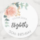 Un arrière - plan blanc chic décoré d'or rose, de fleurs rousses, de rose et d'eucalyptus. Personnalisez et ajoutez une photo, une date, un nom et un âge.