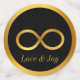 Beau symbole or infinity sur table blanche noire confetti. Words of Love & joy peut être personnalisé. Idéal pour mariage, anniversaire, anniversaire, douches et toutes sortes de fêtes ! Une touche d'élégance et de bonnes vibrations !