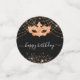 Pour une fête d'anniversaire de 21ème anniversaire (ou de n'importe quel âge). Un arrière - plan noir élégant. Décoré avec de la poussière de parties scintillant en faux or et un masque masqué. Personnalisez et ajoutez votre propre photo de la fille d'anniversaire. Le modèle photo fonctionne le mieux avec une photo carré. Le texte : Le nom en blanc avec un script de style à la main moderne. Personnalisez et ajoutez un nom, 21 ans et une date. Quelques jetons de confetti avec nom et date, d'autres avec le texte : Joyeux Anniversaire écrit avec un script à la mode manuscrit avec des swashes. Ajoutez votre propre photo sur deux des puces.