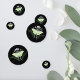 Un bouillonnant papillon de nuit vert est entouré de phases de lune et de feuilles verts luxuriants contre un arrière - plan noir profond.