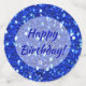 Ce design en bleu royal éclatant a une texture brillante de parties scintillant et l'accueil Joyeux Anniversaire. Vous pouvez modifier le texte pour l'adapter à votre occasion.