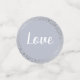Ces pièces de confetti de table sont un mélange de bleu Dusty et bleu Pastel Dusty, double face avec des commentaires bien désirables pour la mariée et le marié. Des graphismes de petite étoile couleur gris-argent ornent les bords avant et arrière. Design simple mais élégant. Des exemples de textes sont "Jason & Emily", "Félicitations", "Bonheur"."Ensemble comme un", "Amour", "Pour toujours". Customisez cet objet ou achetez tel que conçu.