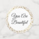 Ces pièces de confetti de table sont un mélange de noir et blanc double face avec des commentaires bien désirables pour les titulaires de titre de votre concours. Graphiques de petite étoile de couleur dorée grace à l'avant et à l'arrière autour des bords. Design simple mais élégant. Des exemples de textes sont "Miss Valley Hills Scholarship Pageant 2019", "vous êtes beau", "talentueux", "intelligent, "prêt à l'emploi", "charmant". Customisez cet objet ou achetez tel que conçu.