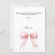 A modern and elegant Confirmation thank you card. A white background, decorated with a large pink colored bow with pearls and a golden cross. On the front the text: Thank You, name, and a date.