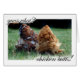 Deux bouts petits plumeux adorables de poulet sous la légende "devinent ce qui ? bouts de poulet !" Ouais, je n'ai jamais obtenu cela, l'un ou l'autre -- est-ce que mais ceux-ci ne sont pas que le poulet le plus doux vous aboute a jamais vu ?