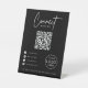 This ultra-modern black and white sign centralizes all your online connections with a stylish, high-contrast layout and an elegant script headline inviting interaction. A single, large, central QR code directs customers to a customized link, while four essential social media and website icons are clearly listed beneath it with corresponding handles. The design is completed by a dedicated space to showcase your company logo, creating a sophisticated and efficient hub for all your business's digital destinations.