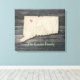 Feiern Sie Staatsstolz mit diesem Connecticut-Leinwandbild, das die Staatskarte zeigt. Eine perfekte Ergänzung für New-England-Heime, Seehäuser oder Küsten-Dekor. Stilvoll und bedeutungsvoll, es macht ein aufmerksames persönliches Geschenk für Connecticut-Einheimische und alle, die New England lieben.