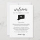 Teilen Sie Ihre Begrüßungsbotschaft für Ihre Hochzeitsgäste in Connecticut sowie eine Route oder einen Zeitplan für die Veranstaltungen am Wochenende. An der Vorderseite finden Sie Ihre Begrüßungsbotschaft mit einer Silhouette des Staat von Connecticut mit einem Innenhof. Auf der Rückseite des Hotels können Sie Ihren Hochzeitstag oder Ihr Hochzeitswochenende individuell gestalten. Ideal, um in Begrüßungssäcke des Hotels zu übernachten oder um die Zimmer Ihrer Gäste zu versenden.