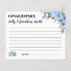 Blue floral Conseils pour Maman & Papa d'être Baby shower Carte de jeu. Jeux en version anglaise et espagnole inclus (avant et arrière). Ajoutez le nom de Maman & Papa pour effacer le design pour les versions anglaise et espagnole. Pour une personnalisation supplémentaire (modifier le libellé, ajouter une photo, la couleur de police, le style de police ), cliquez sur personnaliser, faites défiler vers le bas et cliquez sur le lien "cliquer pour customiser plus loin". COMMENT JOUER : Les clients rempliront des cartes pour partager leurs meilleurs conseils pour le Joyeux Couple.