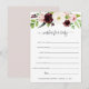 La carte d'activité baby shower floral chic est assortie à notre collection de baby showers Blush Romance et possède une bordure supérieure de fleurs d'aquarelle rose et bordeaux marsala et de feuillage vert luxuriant. La carte "Wives for baby" invite les clients à partager leurs espoirs et leurs rêves pour bébé en chemin. Personnalisez avec la mère pour être le nom et la date de la douche.
