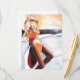 Image peinte unique par Artiste de la carte fille de plage blonde. Idéal pour toutes les occasions.
