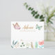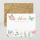 Cartes de conseils baby shower à thème papillon mignonne avec art illustré à la main de papillons rose et vert menthe avec des botaniques colorés au fond. Cette parties scintillant à thème rose et or est idéale pour la douche d'une fille.