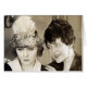 Image humoristique d'une femme plus âgée avec un sourire familier parlant à une jeune femme éblouie. Image en noir et blanc des talkies.