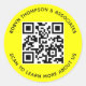 Personalize our round QR code stickers with your company name, QR code link, and custom text. These are professional scratch resistant stickers printed on acid-free paper. Available in a glossy or matte finish in sizes 1.5 inch and 3 inch. Designed in yellow and other colors (all colors are customizable). Low minimum order quantity and no setup fee.