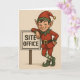 Construction / builder themed Christmas card depicting a Christmas elf leaning against a sign saying 'Site Office'.