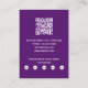 Ein modernes, lila Design, das 1 Ihrer eigenen Fotos und Ihren QR Code beinhaltet. Diese einfache Visitenkarte ist ideal für alle Arten von Fotografen. Eine einfache und berufliche Art, Ihr Unternehmen vorzustellen. Social Media Icons, die in der Gestaltung dieser Visitenkarte für Sie enthalten sind. Personalisieren Sie Ihre Daten, um Ihre eigene Visitenkarte zu erstellen. Eine perfekte Visitenkarte für Fotografie.