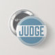 Modernes Design in Blau und Weiß mit dem Text Judge. Der leicht zu lesende Knopf eignet sich perfekt für Wettbewerbe und Veranstaltungen, die einen Richter erfordern. Ideal für Spottrails, Tagungen, Wissenschaftsmessen, Rechtschreibbienen, Blume-Shows, Hundeschauen und Sportveranstaltungen.