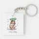 Portez ce message positif où que vous alliez sur un anneau porte - clé ou clé; avec un cobaye heureux dansant sous la pluie, avec une savoureuse feuille de capucine pour parapluie. Le texte par défaut dit "Gardez le sourire", changez de légende si vous préférez. Ils disent que faire semblant de sourire peut réellement changer votre humeur !