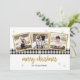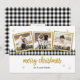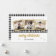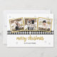 Carte de Noël que vous pouvez insérer 3 photos et votre salutation sur un contrôle noir et blanc de buffle a accentué la carte, avec un monogramme et une date customisés de l'arrière.