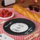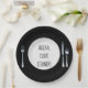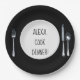 Electronic Alexa commande de cuisiner le dîner sur une assiette blanche avec argenterie. L'arrière - plan noir peut être modifié.
