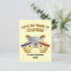 Passen Sie diese Postkarte für Ihr Bake-Off-Ereignis an. Das Design umfasst ein paar lustige, heftig aussehende Cookie-Figuren, die sich vor einer Mischschüssel abheben und Holzlöffel überqueren, unter einem gewölbten Textbild mit dem Titel "Let's Get Ready to Crumble!".