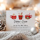 Joli trio illustré de tasses de cacao chaud d'hiver, invitation de fête de vacances. Style design typographique tendance texte modèle avec support couleur rouge coordonné solide.
