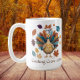 Mit der Tasse des Cooking Crew Erntedank in der Küche vergnügen Sie sich bei einem fröhlichen Truthahn in einem Hut des Koch, umgeben von bunten Herbstblättern. Personalisiert mit dem Jahr, ist diese festliche Tasse perfekt für Familien und Freunde, die Liebe, zusammen zu kochen auf Erntedank. Ein durchdachtes und spielerisches Geschenk für den Koch oder die Crew, ideal zum Kaffee, Tee oder Kakao bei der Zubereitung des Festes.