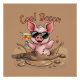 Piglet in sunglasses sitting in the mud with a cocktail and the slogan "Cool Bacon" on a brown background poster (also available in digital download).