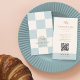 Cool Blue Checkered Cafe Croissant QR Bakery Visitenkarte