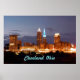 Der Terminalturm in Cleveland, Ohio, hat im Laufe des Jahres viele farbige Lichter, für viele Gelegenheiten - hier ist die Skyline der Stadt Cleveland, Ohio mit den Terminal Tower Leuchten in blau. Das Foto wird im Abend erwischt, genau wie die Lichter in Downtown Cleveland, Ohio, aufgehen.