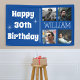 Dieses coole, moderne Foto Collage Banner ergänzt Ihre Dekorationen mit einem blauen Hintergrund, 4 Ihrer Lieblingsfotos und personalisiert durch das Hinzufügen von Alter und Namen.
